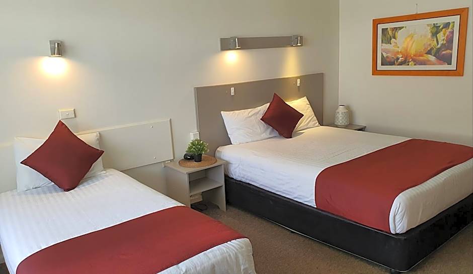 Room offers a queen-size bed and a single bed.
